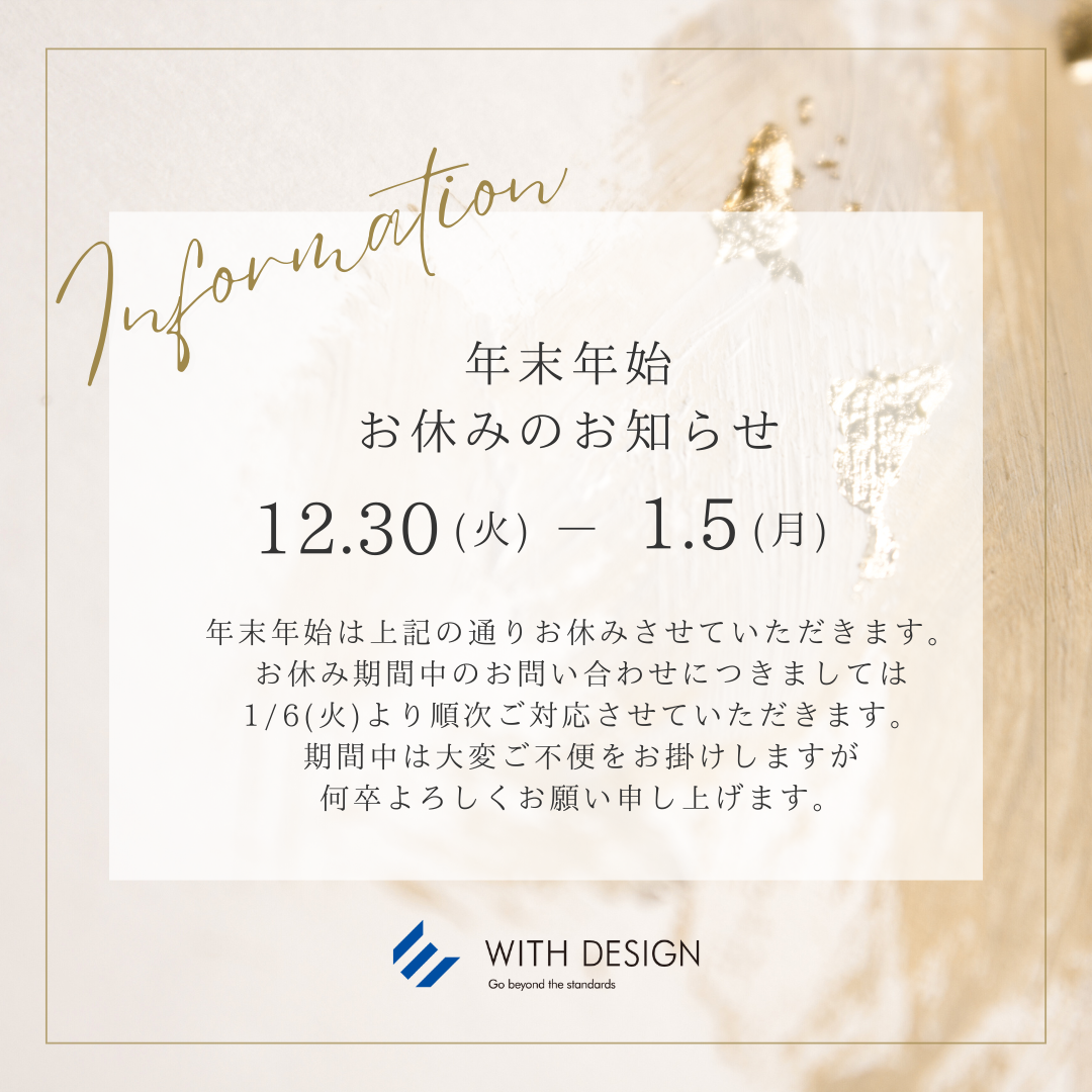 弊社年末年始お休み期間を下記の通りとさせていただきます。