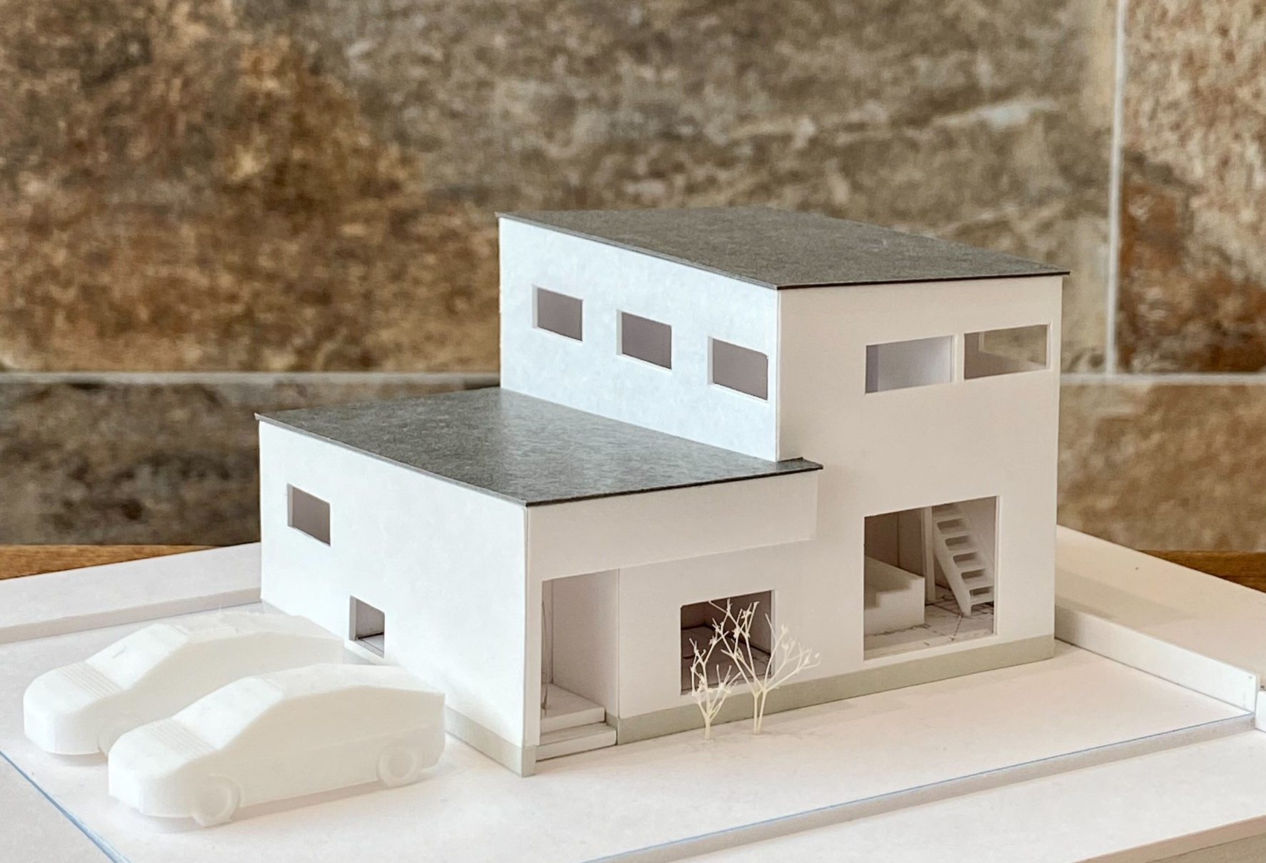 閑静な住宅街に建つ、将来を見据えたシンプルで暮らしやすい二階建ての二世帯住宅が完成しました。